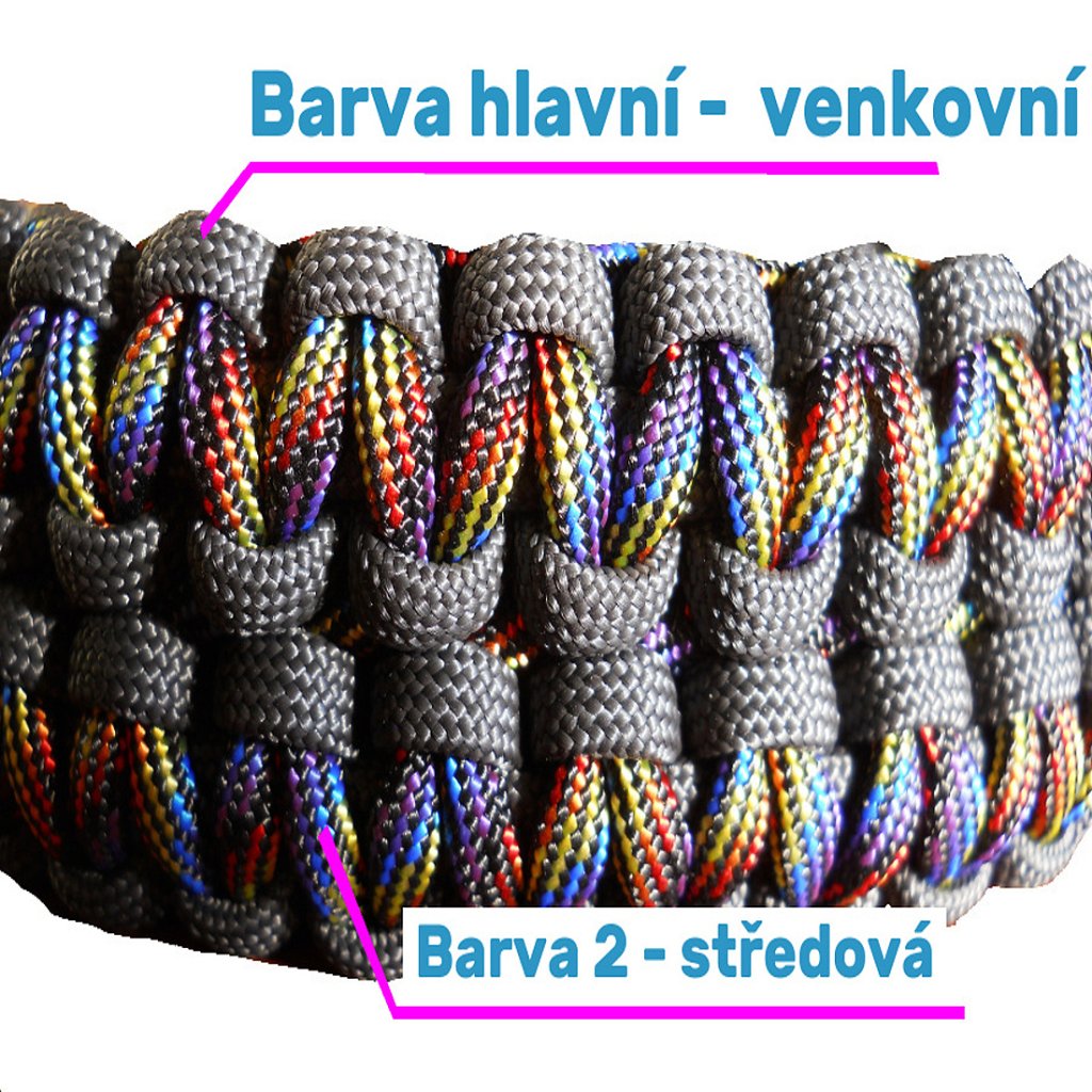 PARACORD OPASEK VLASTNÍ VÝBĚR BAREV - získáte pevný a přitom ohebný řemen, bez nutnosti dodělávat dodatečně dírky. Opasek si zapnete tam kde potřebujete v rozmezí 1cm. Díky masívní nerezové sponě je určen pro muže. Vyberte si vlastní barevnou kombinaci a velikost. Pokud chcete dvoubarevný opasek, vyberte druhou barvu z nabídky. Vše je vyrobeno na Vaší objednávku. Pro upletení opasku je použito nejvíce PARACORDU ze všech našich výrobků, cca30m v závislosti na délce a to se opravdu v nouzi může hodit.